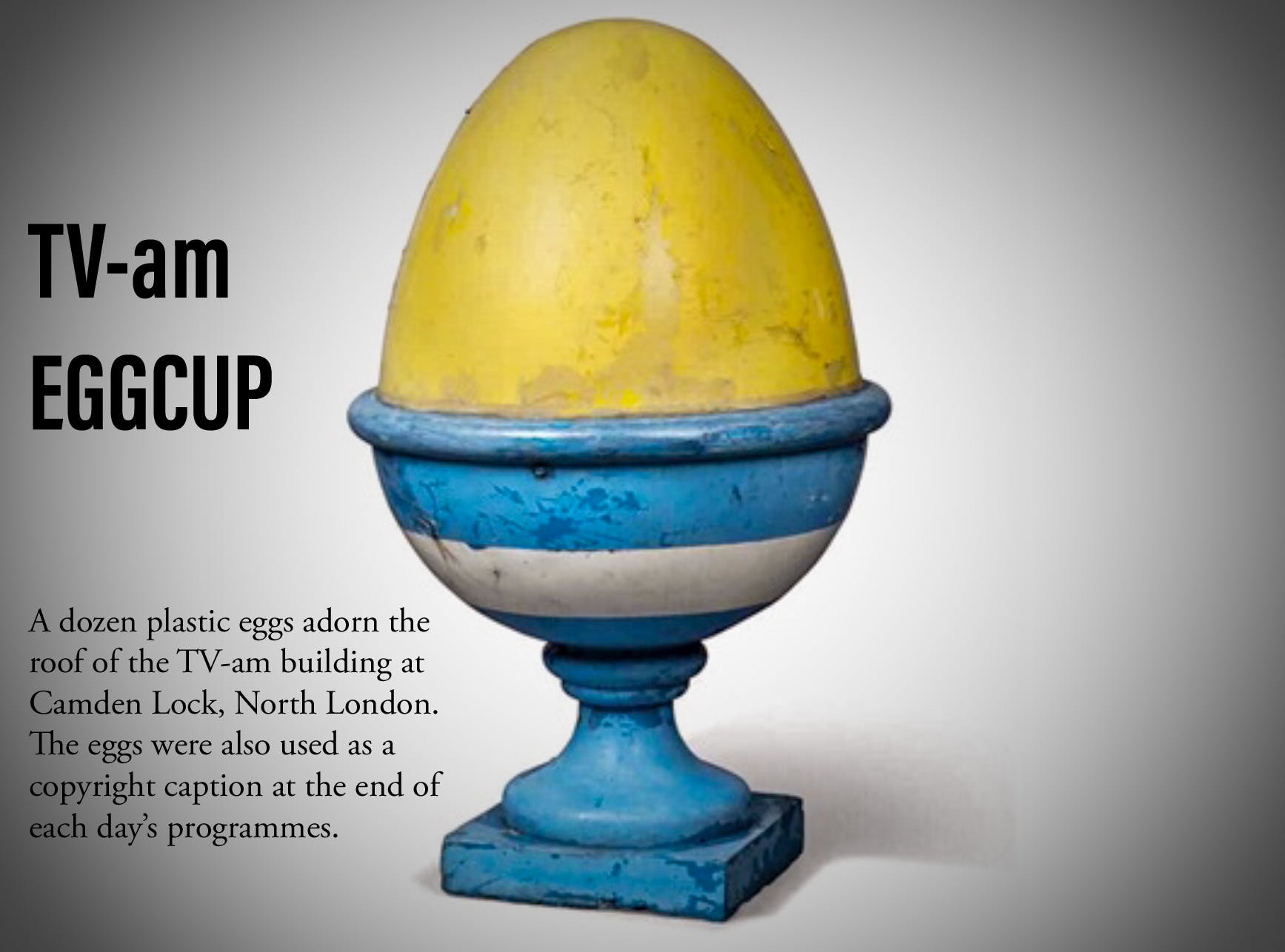 The building, nicknamed the Breakfast Television Centre, won a Civic Trust Award in 1985 and became a listed landmark of 1980s postmodernism. Though TV-am went off air in 1992 and the site later passed to MTV, the outline of Farrell’s design remains visible, with several of the famous eggcups still intact.